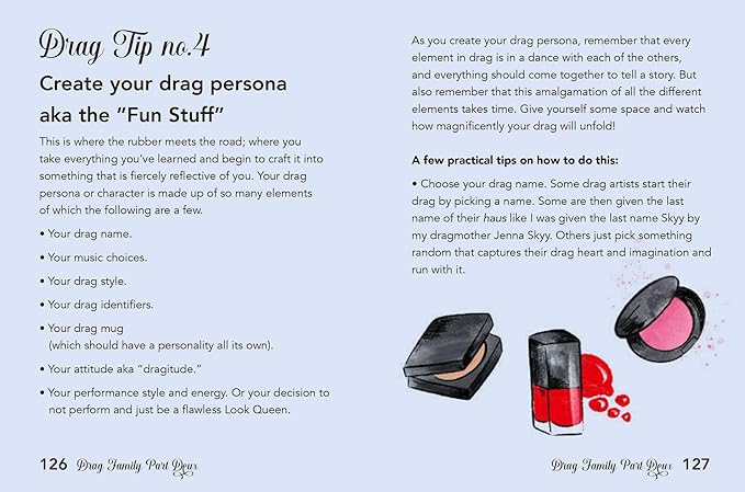 Finally a resources section covers drag terminology, how to become a drag artist, and what to read and watch to find out more about drag. Profiles of the different kinds of drag artist feature throughout.